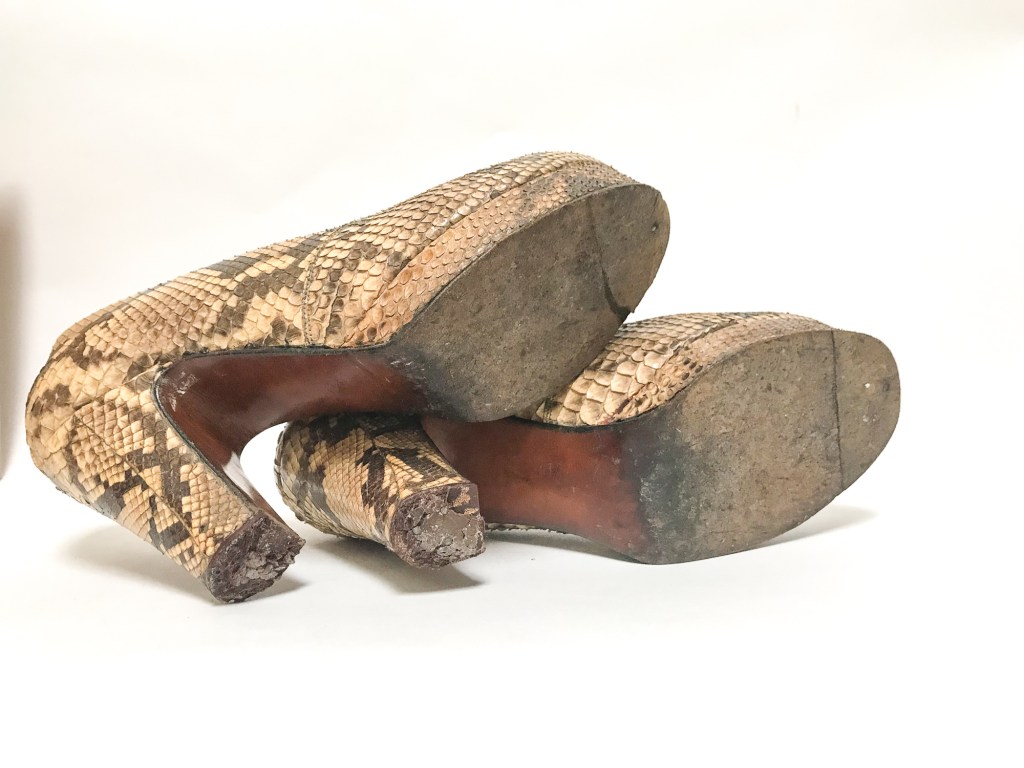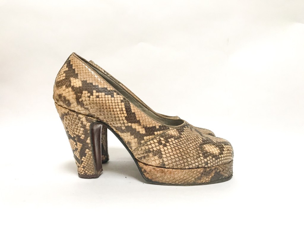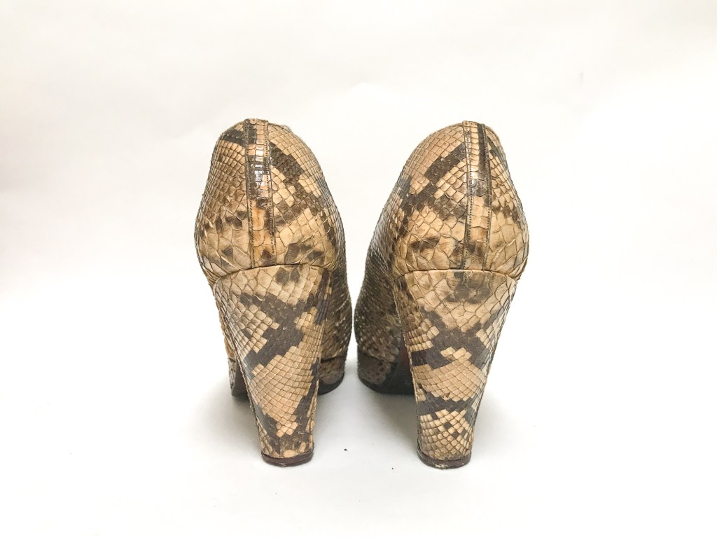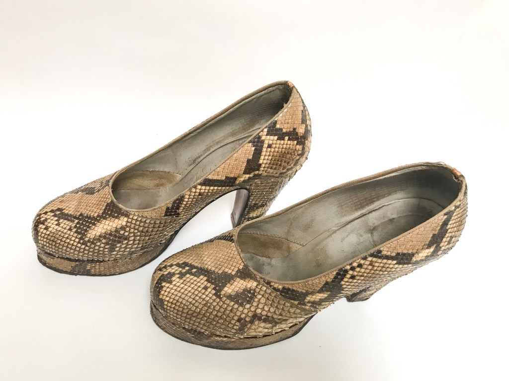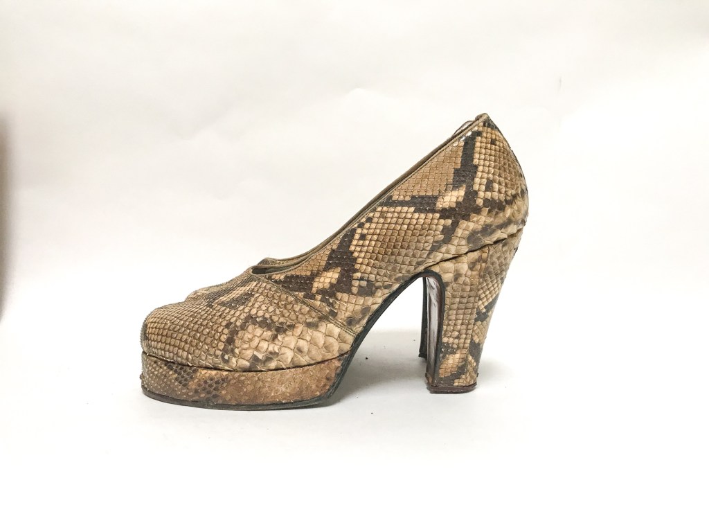 Pumps in snakeskin with 2 cm high platforms, these are worn shoes from the 1940s but they are still perfectly wearable! And they look great and glamorous if you do!