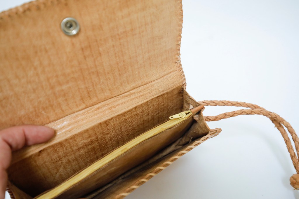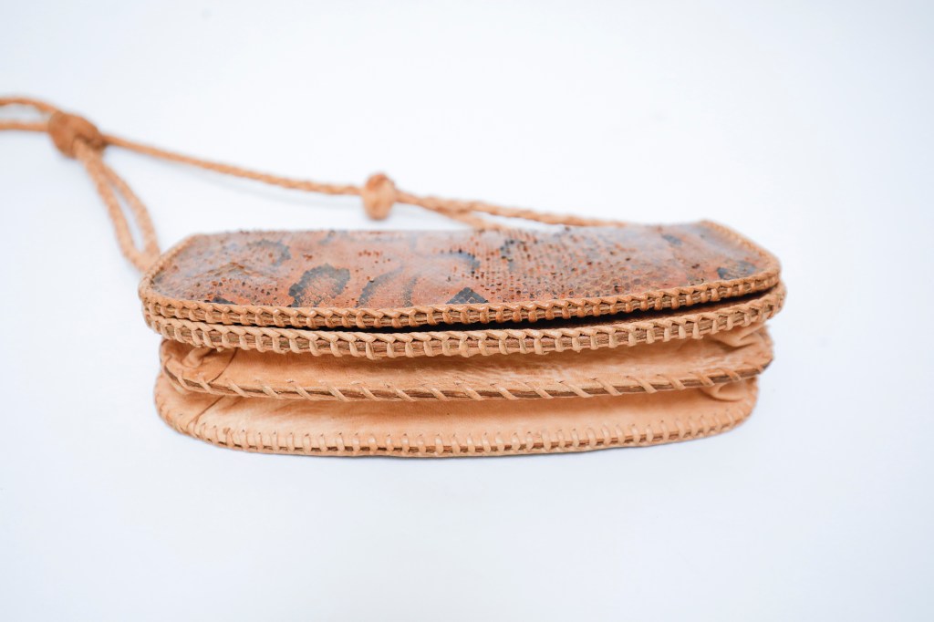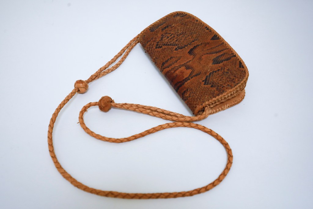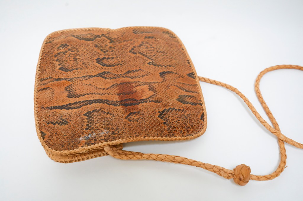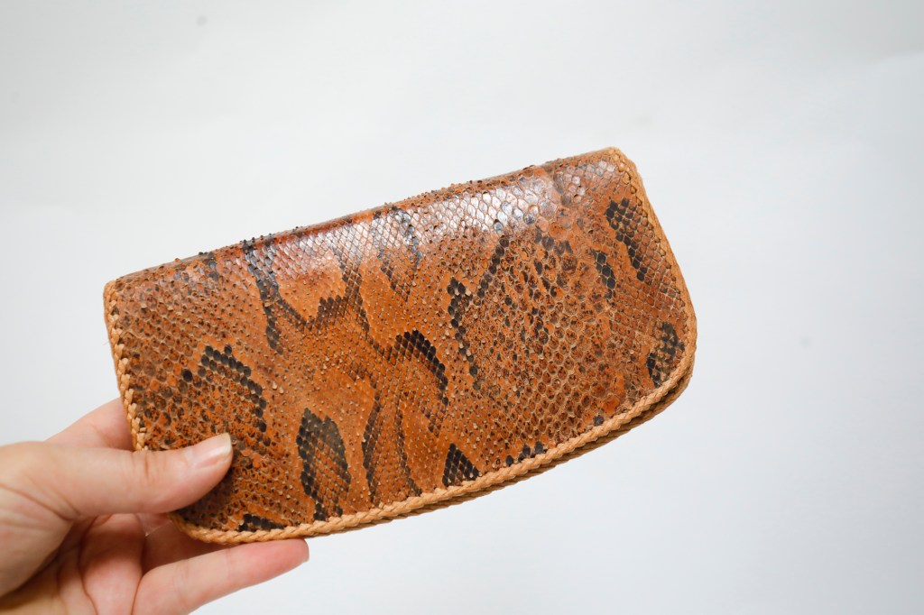 This small vintage snakeskin leather purse from the seventies will hold your phone, creditcard and some change.