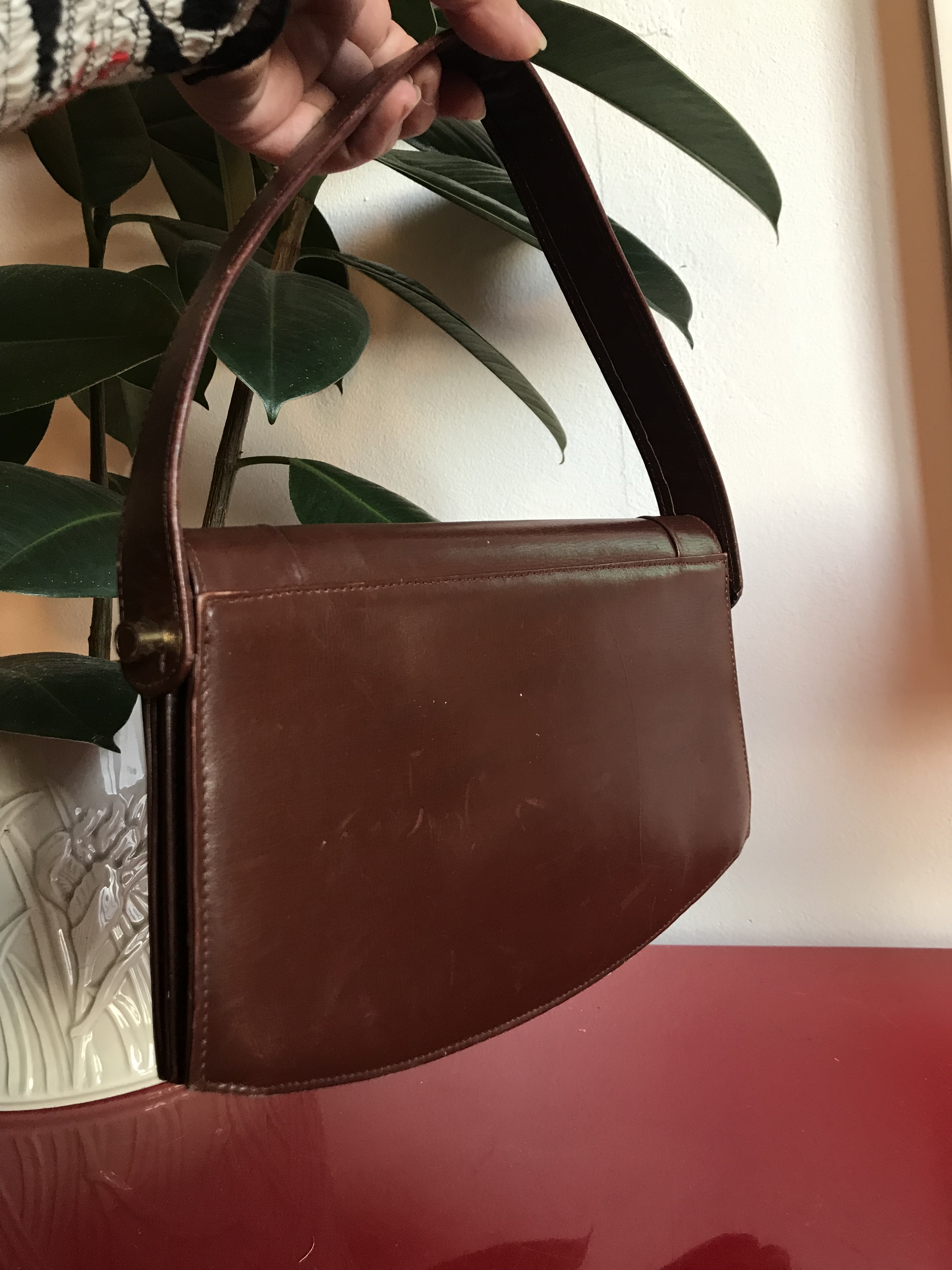 Vintage tasje in bruin leer uit de jaren 30
