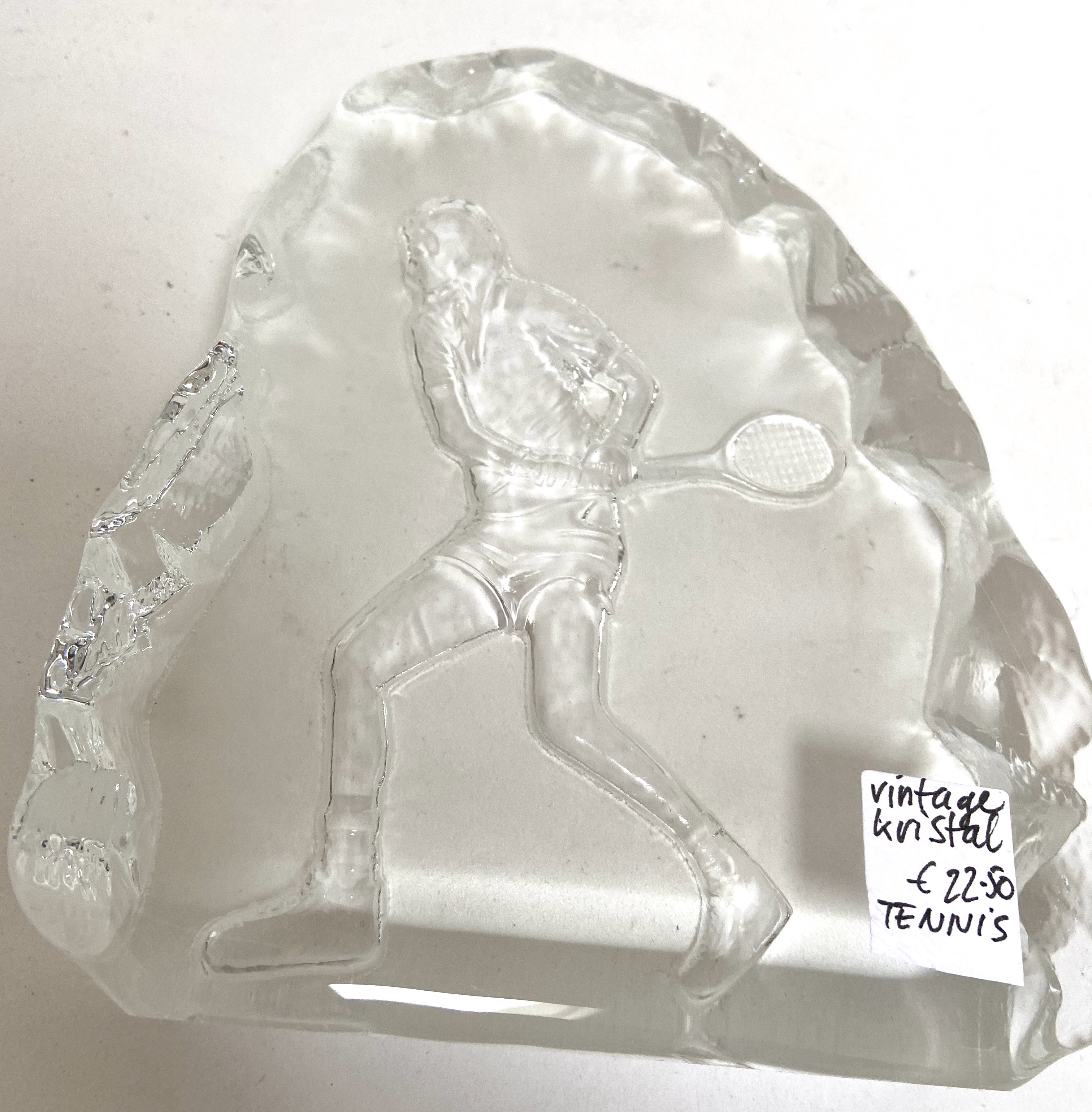 Tennisplayer in scandi kristal art glass